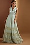 Featuring an aqua kurta in raw silk, chiffon and organza base. It is paired with matching palazzo pants.
