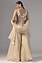 Featuring a beige kurta in tussar base with embroidery. It is paired with palazzo pants and an organza dupatta. Accentuate with statement earrings and heels for festive occasion or wedding ceremonies.