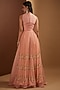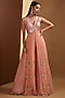 Featuring a brick kurta in raw silk, chiffon and organza base. It is paired with matching palazzo pants.