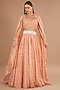 Featuring a brick lehenga in organza base with stone embroidery. It is paired with a raw silk blouse and a net dupatta. Accentuate this designer lehenga set with statement jewellery and heels for your wedding or engagement ceremony.