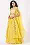 Featuring a bright yellow cape in raw silk and chiffon base. It is paired with matching organza palazzo pants and a blouse.
