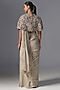 Dark Vanilla Chiffon Embroidered Jacket Saree Set