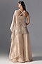 Featuring a dull pink strappy kurta in raw silk base with embroidery. It is paired with chiffon palazzo pants and a tissue dupatta. Accentuate with statement earrings and heels for festive occasion or wedding ceremonies.