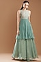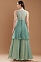 Featuring an eco green pansy kurta in raw silk and chiffon base with jaal embroidery. It is paired with matching palazzo pants.