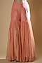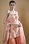Featuring a peach kurta in organza, raw silk, silk and chiffon base with pearl embroidery. It is paired with matching sharara pants and a dupatta.