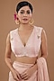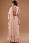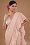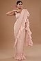 Featuring a pink frilled saree in chiffon and raw silk base with embroidery. It is paired with an embroidered blouse. Style it with statement dangler earrings, heels, and a stack of coordinating bangles for the perfect look at a cocktail or engagement ceremony.