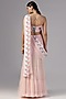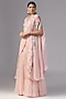 Featuring a pink cape in organza base. It is paired with a raw silk bustier, silk and net skirt having print and embroidery. Accentuate it with statement jewellery or heels for a wedding, cocktail or sangeet ceremony.