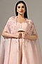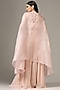 Featuring a pink cape in organza base with embroidery. It is paired with a bustier and chiffon palazzo pants. Accentuate it with statement jewellery or heels for a festive occasion, wedding, sangeet or engagement ceremony.