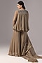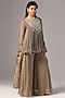Featuring a sienna kurta in raw silk base with embroidery. It is paired with chiffon palazzo pants and an organza dupatta. Accentuate it with statement jewellery or heels for a festive occasion, wedding, sangeet or engagement ceremony.