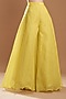 Featuring a yellow dress in organza, raw silk and chiffon base with block print and jaal embroidery. It is paired with a matching skirt.