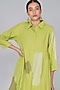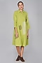 Featuring a green button down gathered shirt dress in cotton jamdani base.