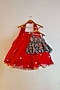 Featuring a red lehenga for girls in georgette and modal satin base with cancan. It is paired with a printed peplum blouse and a dupatta. Style it with cute hair accessories and sandals for a wedding or festive occasion.
