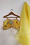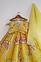 Featuring a yellow lehenga for girls in organza base with cancan. It is paired with a strappy blouse and a dupatta. Style it with cute hair accessories and sandals for a wedding or festive occasion.
