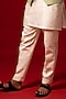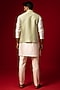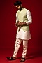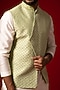 Featuring a tea green nehru jacket in bam silk base with thread work and embroidery. It is paired with a contrasting ivory kurta and malai cotton pants.