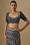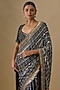 Featuring a black tie-dye saree in georgette, shantoon and net base with threadwork and sequins hand embroidery. It is paired with an embroidered blouse. Accentuate it with jewellery, embellished heels and a clutch for a wedding ceremony or festive occasions.