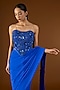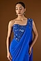 Featuring an electric blue pre-draped saree in georgette, shantoon and satin base. It is paired with a corset blouse having glass beads and sequins embroidery. Accentuate it with dangler earrings and block heels for a festive occasion or family gathering.