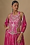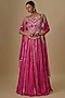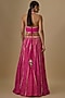 Featuring a hot pink lehenga in georgette and shantoon base with leheriya print and mirror hand embroidery. It is paired with a boho corset blouse and a net dupatta. Accentuate it with statement jewellery and heels for festive occasions or wedding ceremonies.