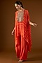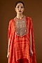 Featuring an orange hand tie-dyed kaftan in georgette base with glass beads, mirror work and kiran hand embroidery. It is paired with a camisole and crepe palazzo pants. Accentuate it with dangler earrings and block heels for a festive occasion or family gathering.