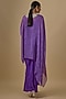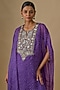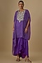 Featuring a purple kaftan in georgette, shantoon and net base with leheriya print, metallic thread and mirror work. It is paired with a camisole and crepe dhoti pants. Accentuate it with statement earrings and heels for a brunch or casual outing.