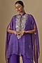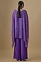 Featuring a purple kaftan in georgette, shantoon and net base with leheriya print, metallic thread and mirror work. It is paired with a camisole and crepe dhoti pants. Accentuate it with statement earrings and heels for a brunch or casual outing.