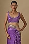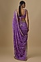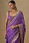 Featuring a purple saree in georgette base with sequins embroidery. It is paired with a shantoon and net embroidered blouse. Accentuate it with jewellery, embellished heels and a clutch for a wedding ceremony or festive occasions.
