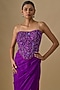 Featuring a purple pre-draped saree in georgette base with sequins and cutdana hand embroidery. It is paired with a shantoon and net embroidered corset. Accentuate it with dangler earrings and heels for cocktail or wedding ceremonies.