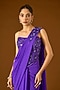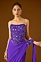 Featuring a violet pre-draped saree in georgette and satin base. It is paired with a corset having sequins, floral and cutdana hand embroidery, including cut-out detail. Accentuate it with zircon jewellery and heels for a sangeet or cocktail ceremony.