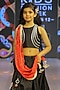 Featuring a black lehenga for girls in silk base. It is paired with a blouse, a red georgette dupatta and a potli bag. Style it with cute hair accessories and sandals for a festive occasion or wedding ceremony.