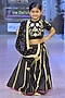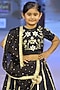 Featuring a black lehenga for girls in taffeta silk base. It is paired with a hand-embroidered elbow sleeve blouse, a georgette dupatta and a potli bag. Style it with cute hair accessories and sandals for a festive occasion or wedding ceremony.