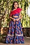 Blue Chanderi Floral Printed Lehenga Set For Girls