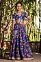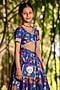 Blue Chanderi Floral Printed Lehenga Set For Girls