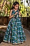 Blue Chanderi Floral Printed Lehenga Set For Girls