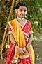 Featuring a cherry red lehenga for girls in chanderi base with floral print. It is paired with a half sleeves blouse and a net dupatta and potli bag. Style it with cute hair accessories and sandals for a festive occasion or wedding ceremony.