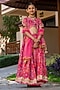 Cherry Red Chanderi Floral Printed Lehenga Set For Girls