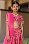 Featuring a cherry lehenga for girls in chanderi base with floral print. It is paired with a half-sleeved blouse and a net dupatta and a potli bag. Style it with cute hair accessories and sandals for a festive occasion or wedding ceremony.