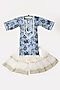 Featuring a blue kurta in cotton base with lace detailing and hand block print. It is paired with contrasting ivory sharara pants and a dupatta.