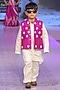 Featuring a magenta pink jacket for boys in taffeta silk base with hand embroidery. It is paired with an ivory cotton viscose kurta and trousers. Style it with mojris and a watch for any festive occasion or sangeet ceremony.