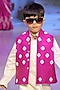 Magenta Pink Taffeta Silk Hand Embroidered Nehru Jacket Set For Boys
