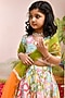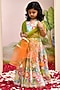 Multi-Colored Chanderi Floral Printed Lehenga Set for Girls