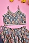 Featuring a multi-colored lehenga for girls in silk base with floral print. It is paired with a spaghetti blouse and a net two tone dupatta. Style it with cute hair accessories and sandals for a festive occasion or wedding ceremony.