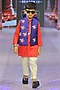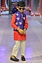 Featuring a navy blue Jacket for boys in taffeta silk base with hand embroidery. It is paired with a red cotton viscose kurta and trousers. Style it with mojris and a watch for any festive occasion or sangeet ceremony.