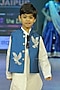 Navy Blue Taffeta Silk Hand Embroidered Nehru Jacket Set For Boys