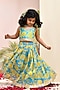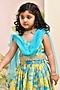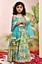 Neon Blue & Yellow Chanderi Floral Printed Lehenga Set for Girls