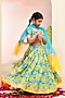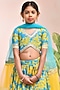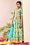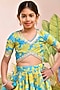 Neon Blue & Yellow Chanderi Floral Printed Lehenga Set for Girls