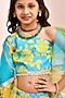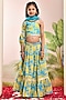 Neon Blue & Yellow Chanderi Floral Printed Lehenga Set for Girls