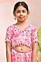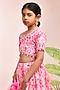 Neon Pink Chanderi Floral Printed Lehenga Set for Girls