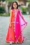 Neon Pink Silk Hand Embroidered Lehenga Set For Girls