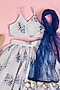 Featuring a powder blue lehenga for girls in chanderi base with floral print. It is paired with a matching spaghetti blouse and a contrasting net dupatta.