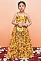 Featuring a yellow lehenga for girls in chanderi base with floral print. It is paired with a spaghetti blouse, a net dupatta and potli bag. Style it with cute hair accessories and sandals for a festive occasion or wedding ceremony.