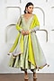 Neon Green & Grey Chanderi Floral Printed & Gota Work Anarkali Set